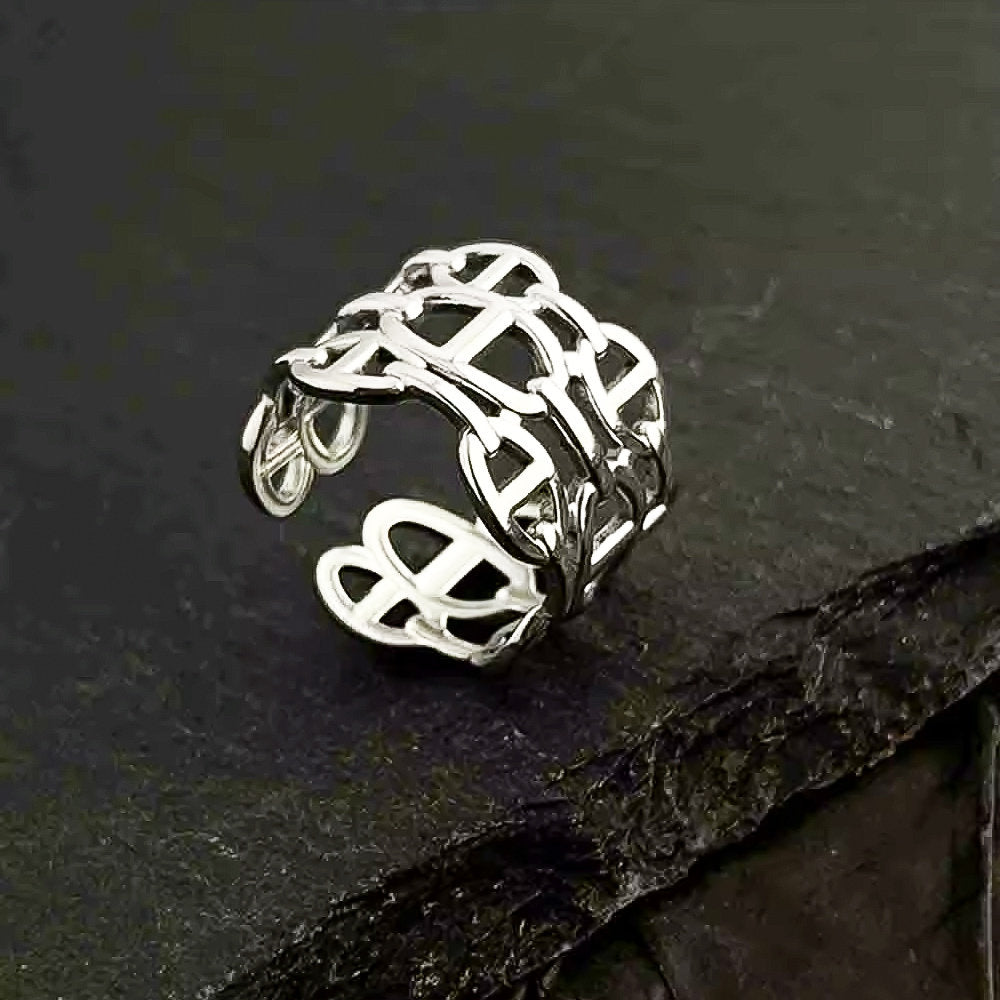 Ajoutez de la fantaisie avec cette bague ouverte et ajustable en maille marine en acier inoxydable gris ou doré.