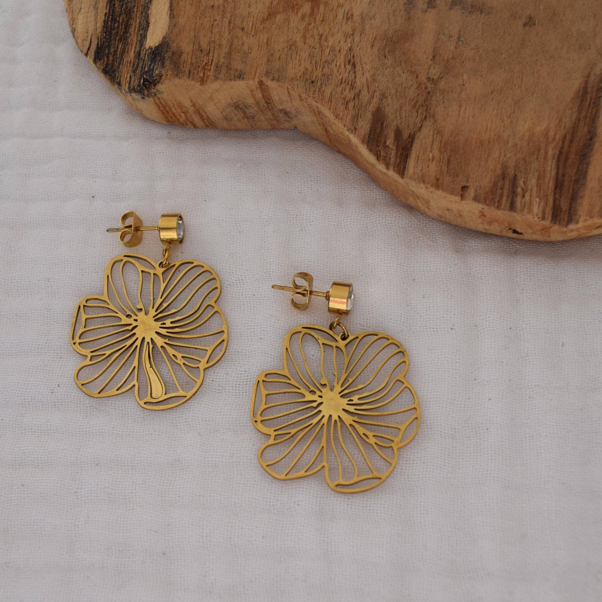 Boucles d'oreilles Flora acier inoxydable ou doré à l'or fin