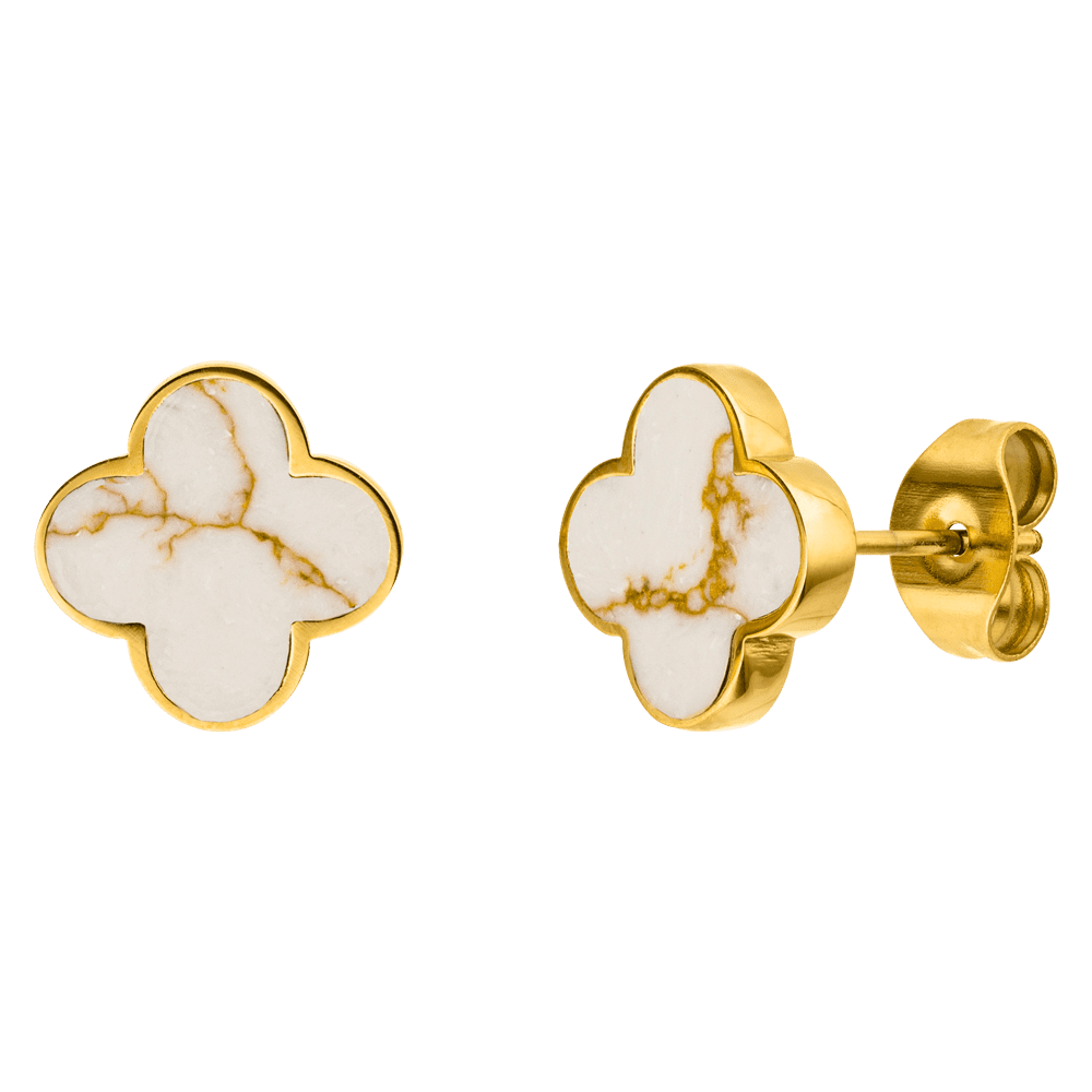 Boucles d'oreilles Trèfle blanc | Plaqué or 18 carats ou acier chirurgical poli