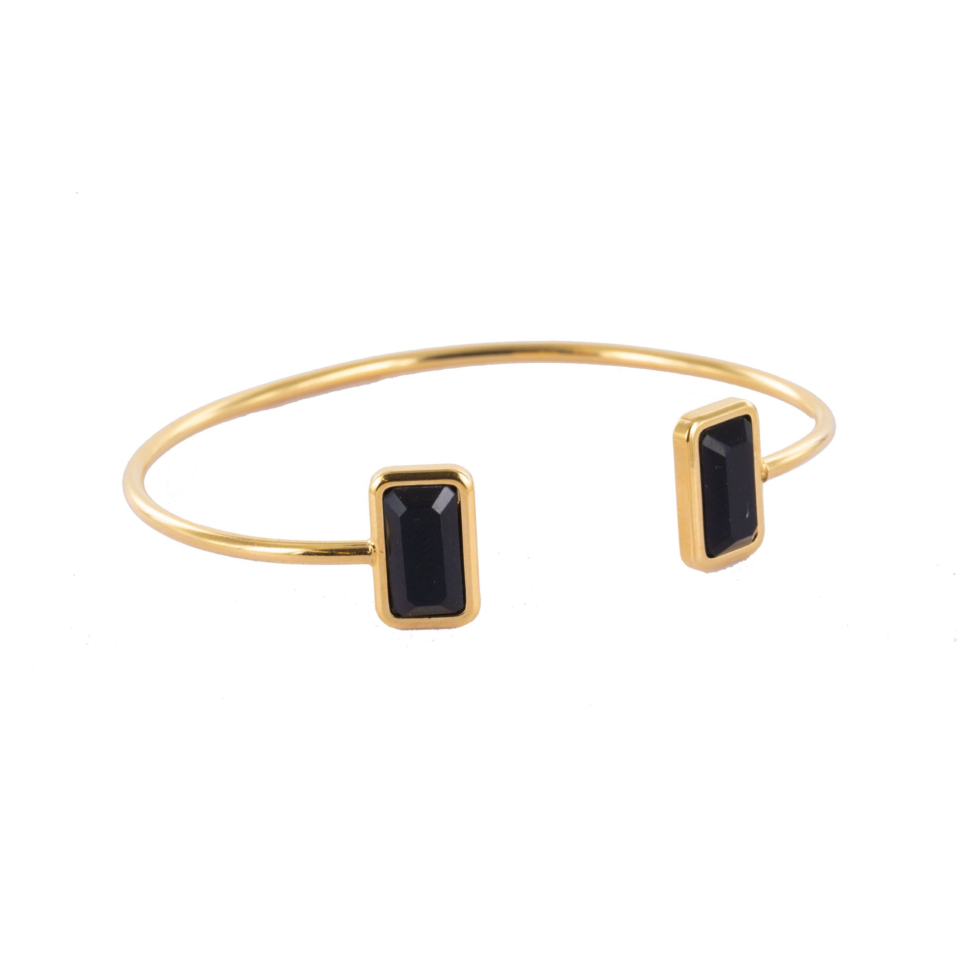 Jonc double pierre taille baguette disponible en malachite agate noir ou nacre.