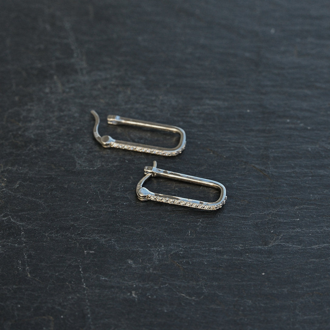 Boucles d'oreilles "Kimy" créoles rectangulaires arrondies, serties d'oxydes de zirconium sur le devant de la paire. Fermeture avec étrier.