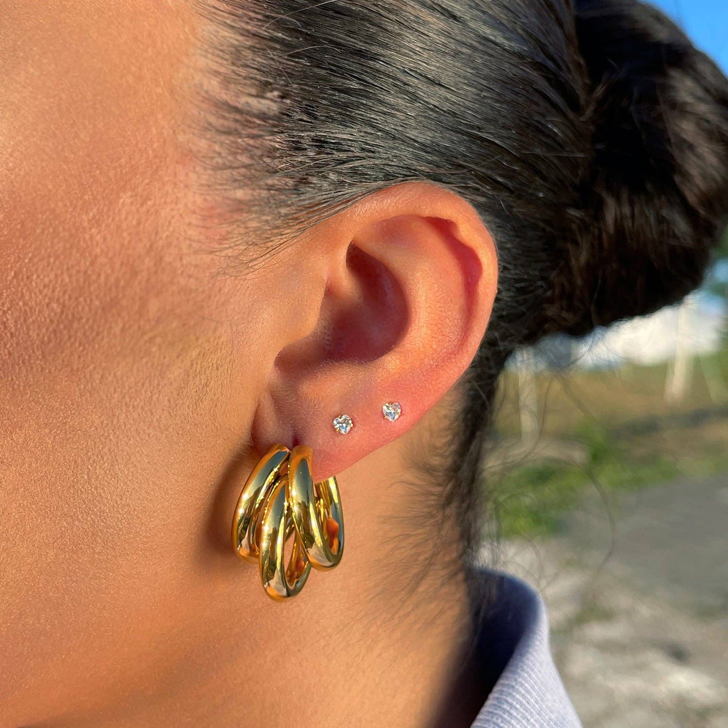 NOUVEAUTE ! Triple clous d'oreilles | Plaqué or 18K ou acier chirurgical de haute qualité